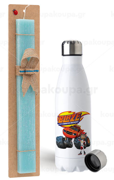 Ο Μπλέιζ και οι Φίλοι του, Πασχαλινή Λαμπάδα με μεταλλικό παγούρι ανοξείδωτο (750ml) & κερί αρωματικό πλακέ (30cm) (ΤΙΡΚΟΥΑΖ)