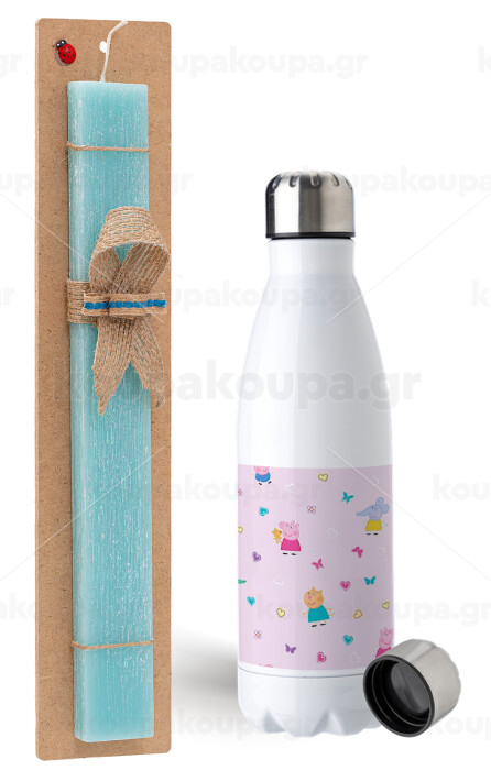 Πέππα το γουρουνάκι και οι φίλοι της, Πασχαλινή Λαμπάδα με μεταλλικό παγούρι ανοξείδωτο (750ml) & κερί αρωματικό πλακέ (30cm) (ΤΙΡΚΟΥΑΖ)