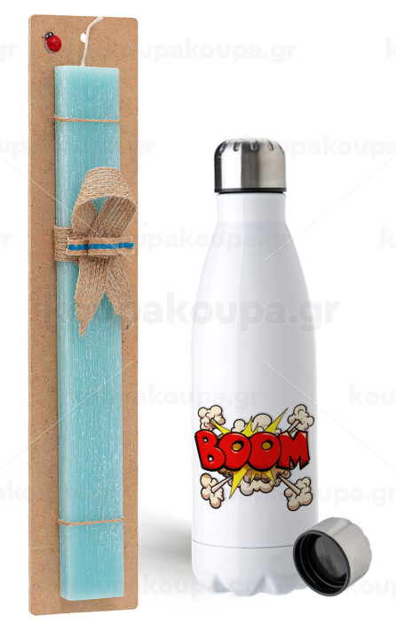 BOOM!!!, Πασχαλινή Λαμπάδα με μεταλλικό παγούρι ανοξείδωτο (750ml) & κερί αρωματικό πλακέ (30cm) (ΤΙΡΚΟΥΑΖ)