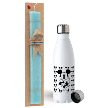 Mickey, Πασχαλινή Λαμπάδα με μεταλλικό παγούρι ανοξείδωτο (750ml) & κερί αρωματικό πλακέ (30cm) (ΤΙΡΚΟΥΑΖ)