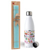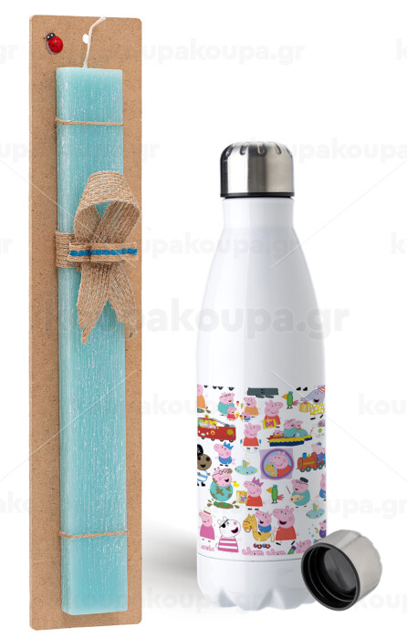 Peppa pig Characters, Πασχαλινή Λαμπάδα με μεταλλικό παγούρι ανοξείδωτο (750ml) & κερί αρωματικό πλακέ (30cm) (ΤΙΡΚΟΥΑΖ)