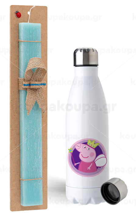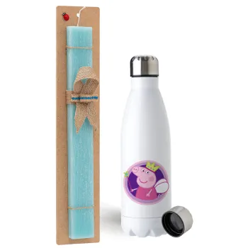 Peppa pig Queen, Πασχαλινή Λαμπάδα με μεταλλικό παγούρι ανοξείδωτο (750ml) & κερί αρωματικό πλακέ (30cm) (ΤΙΡΚΟΥΑΖ)