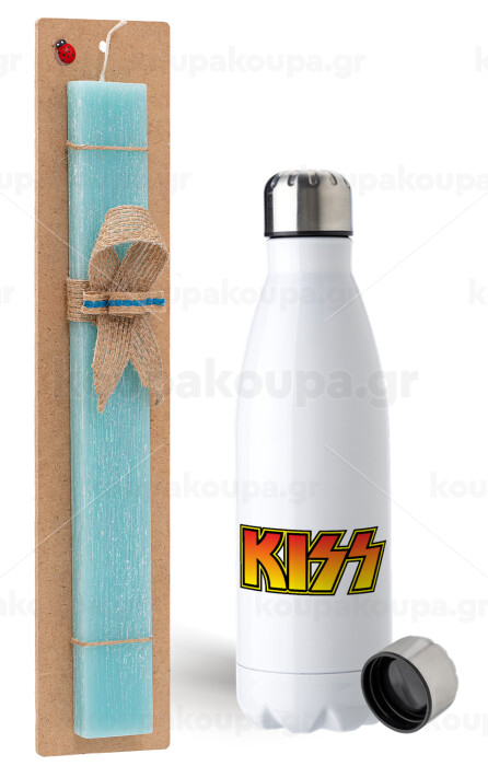 KISS, Πασχαλινή Λαμπάδα με μεταλλικό παγούρι ανοξείδωτο (750ml) & κερί αρωματικό πλακέ (30cm) (ΤΙΡΚΟΥΑΖ)