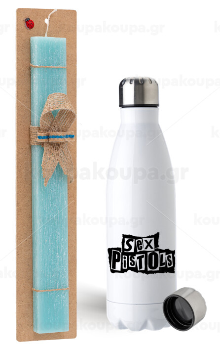 Sex Pistols, Πασχαλινή Λαμπάδα με μεταλλικό παγούρι ανοξείδωτο (750ml) & κερί αρωματικό πλακέ (30cm) (ΤΙΡΚΟΥΑΖ)