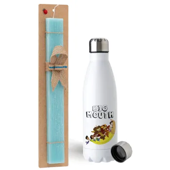 Big mouth, Πασχαλινή Λαμπάδα με μεταλλικό παγούρι ανοξείδωτο (750ml) & κερί αρωματικό πλακέ (30cm) (ΤΙΡΚΟΥΑΖ)
