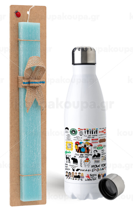 Friends, Πασχαλινή Λαμπάδα με μεταλλικό παγούρι ανοξείδωτο (750ml) & κερί αρωματικό πλακέ (30cm) (ΤΙΡΚΟΥΑΖ)