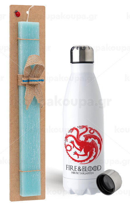 GOT House Targaryen, Fire Blood, Πασχαλινή Λαμπάδα με μεταλλικό παγούρι ανοξείδωτο (750ml) & κερί αρωματικό πλακέ (30cm) (ΤΙΡΚΟΥΑΖ)
