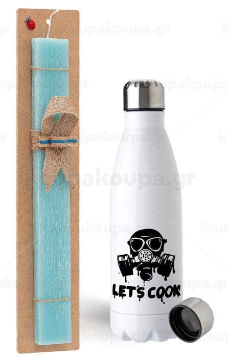 Let's cook mask, Πασχαλινή Λαμπάδα με μεταλλικό παγούρι ανοξείδωτο (750ml) & κερί αρωματικό πλακέ (30cm) (ΤΙΡΚΟΥΑΖ)