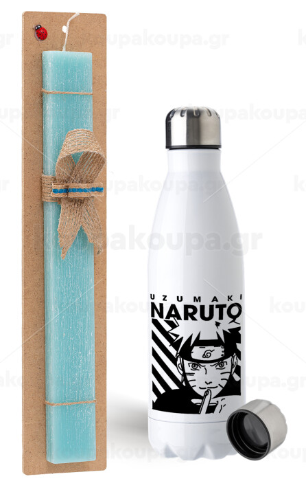 Naruto uzumaki, Πασχαλινή Λαμπάδα με μεταλλικό παγούρι ανοξείδωτο (750ml) & κερί αρωματικό πλακέ (30cm) (ΤΙΡΚΟΥΑΖ)