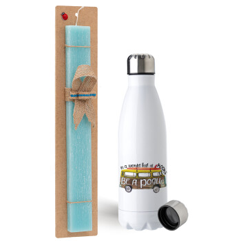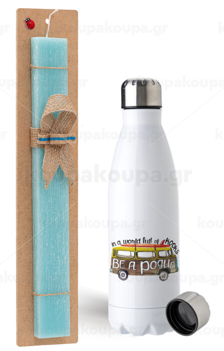Outerbanks Pogue Life, Πασχαλινή Λαμπάδα με μεταλλικό παγούρι ανοξείδωτο (750ml) & κερί αρωματικό πλακέ (30cm) (ΤΙΡΚΟΥΑΖ)