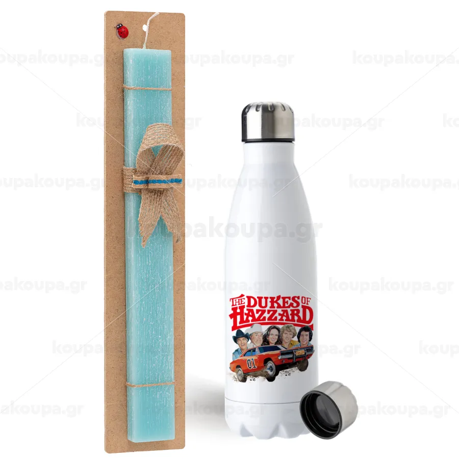 The Dukes of Hazzard, Πασχαλινή Λαμπάδα με μεταλλικό παγούρι ανοξείδωτο (750ml) & κερί αρωματικό πλακέ (30cm) (ΤΙΡΚΟΥΑΖ)