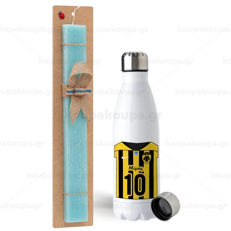ΑΕΚ εμφάνιση, Πασχαλινή Λαμπάδα με μεταλλικό παγούρι ανοξείδωτο (750ml) & κερί αρωματικό πλακέ (30cm) (ΤΙΡΚΟΥΑΖ)