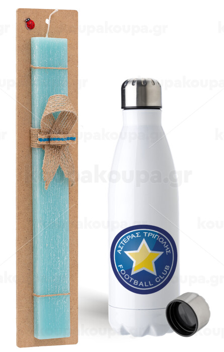 Αστέρας Τρίπολης, Πασχαλινή Λαμπάδα με μεταλλικό παγούρι ανοξείδωτο (750ml) & κερί αρωματικό πλακέ (30cm) (ΤΙΡΚΟΥΑΖ)