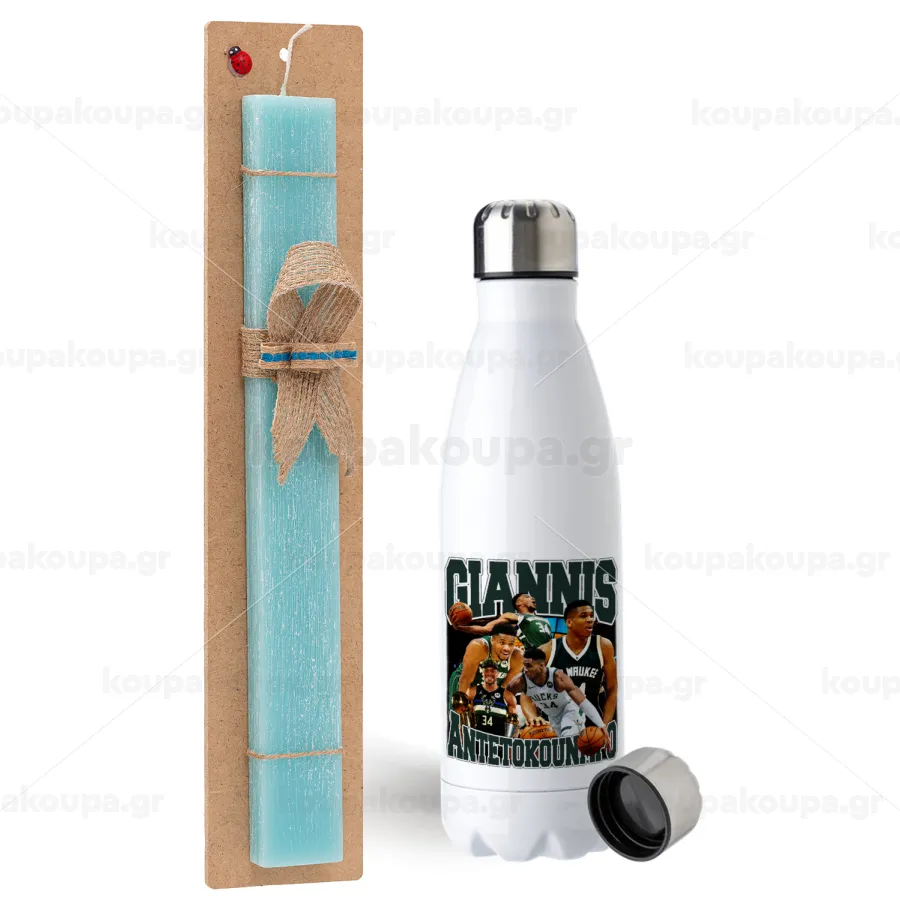 Giannis Antetokounmpo, Πασχαλινή Λαμπάδα με μεταλλικό παγούρι ανοξείδωτο (750ml) & κερί αρωματικό πλακέ (30cm) (ΤΙΡΚΟΥΑΖ)
