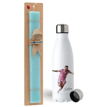 Lionel Messi inter miami jersey, Πασχαλινή Λαμπάδα με μεταλλικό παγούρι ανοξείδωτο (750ml) & κερί αρωματικό πλακέ (30cm) (ΤΙΡΚΟΥΑΖ)