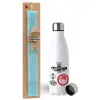 Olympiacos UEFA Europa Conference League Champion 2024, Πασχαλινή Λαμπάδα με μεταλλικό παγούρι ανοξείδωτο (750ml) & κερί αρωματικό πλακέ (30cm) (ΤΙΡΚΟΥΑΖ)