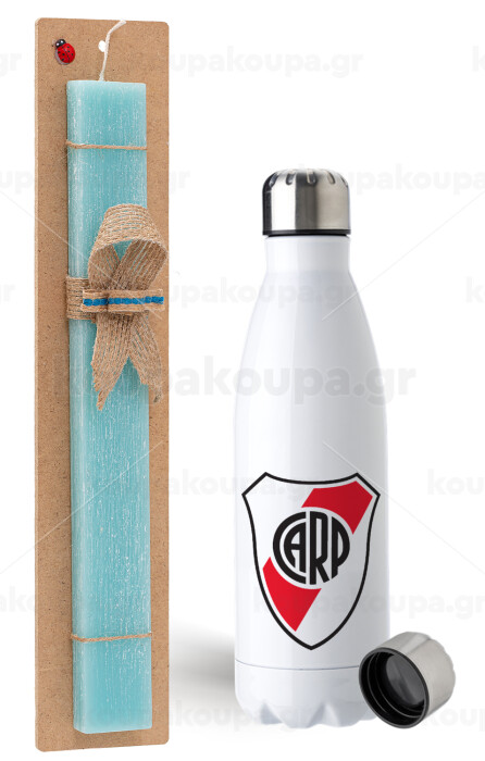 River Plate, Πασχαλινή Λαμπάδα με μεταλλικό παγούρι ανοξείδωτο (750ml) & κερί αρωματικό πλακέ (30cm) (ΤΙΡΚΟΥΑΖ)