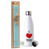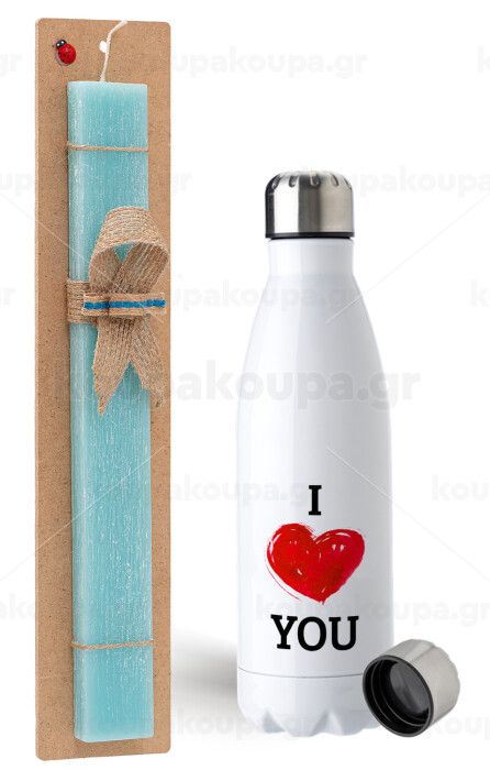 I Love You, Πασχαλινή Λαμπάδα με μεταλλικό παγούρι ανοξείδωτο (750ml) & κερί αρωματικό πλακέ (30cm) (ΤΙΡΚΟΥΑΖ)