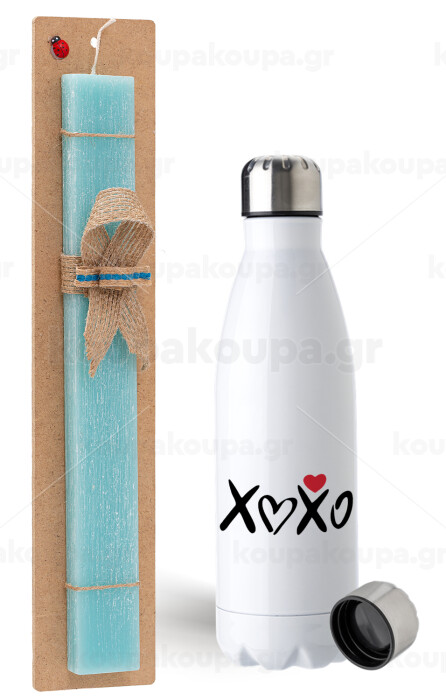 xoxo, Πασχαλινή Λαμπάδα με μεταλλικό παγούρι ανοξείδωτο (750ml) & κερί αρωματικό πλακέ (30cm) (ΤΙΡΚΟΥΑΖ)