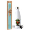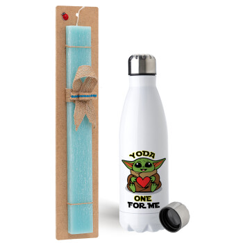 Yoda, one for me , Πασχαλινή Λαμπάδα με μεταλλικό παγούρι ανοξείδωτο (750ml) & κερί αρωματικό πλακέ (30cm) (ΤΙΡΚΟΥΑΖ)