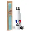 France flag, Πασχαλινή Λαμπάδα με μεταλλικό παγούρι ανοξείδωτο (750ml) & κερί αρωματικό πλακέ (30cm) (ΤΙΡΚΟΥΑΖ)