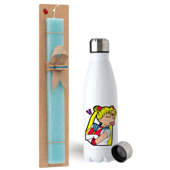 Sailor Moon, Πασχαλινή Λαμπάδα με μεταλλικό παγούρι ανοξείδωτο (750ml) & κερί αρωματικό πλακέ (30cm) (ΤΙΡΚΟΥΑΖ)