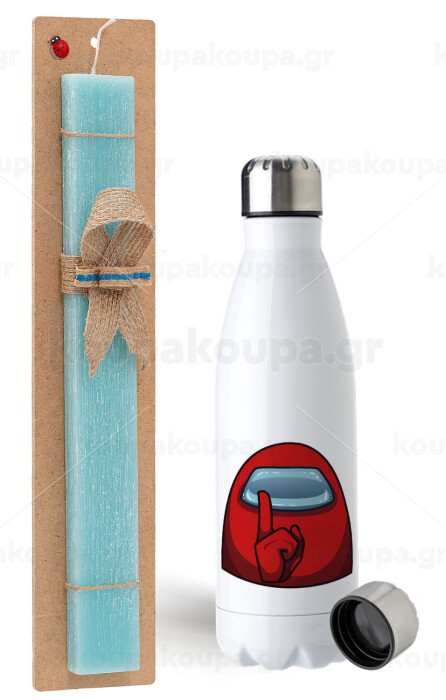 Among US, Πασχαλινή Λαμπάδα με μεταλλικό παγούρι ανοξείδωτο (750ml) & κερί αρωματικό πλακέ (30cm) (ΤΙΡΚΟΥΑΖ)