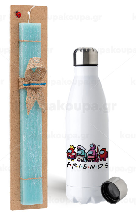 Among US Friends, Πασχαλινή Λαμπάδα με μεταλλικό παγούρι ανοξείδωτο (750ml) & κερί αρωματικό πλακέ (30cm) (ΤΙΡΚΟΥΑΖ)