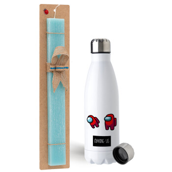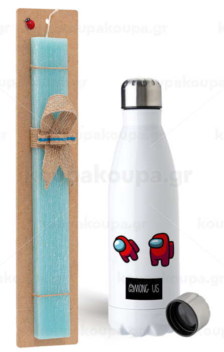 Among US, Πασχαλινή Λαμπάδα με μεταλλικό παγούρι ανοξείδωτο (750ml) & κερί αρωματικό πλακέ (30cm) (ΤΙΡΚΟΥΑΖ)