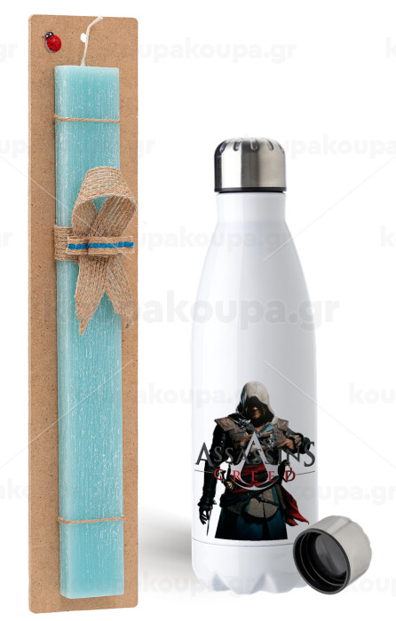 Assassin's Creed, Πασχαλινή Λαμπάδα με μεταλλικό παγούρι ανοξείδωτο (750ml) & κερί αρωματικό πλακέ (30cm) (ΤΙΡΚΟΥΑΖ)