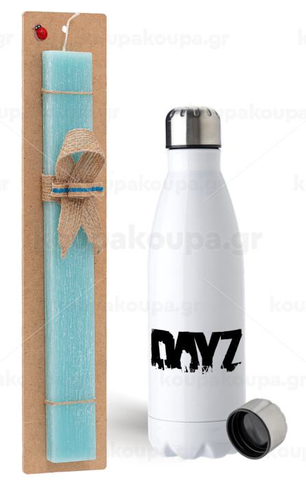 DayZ, Πασχαλινή Λαμπάδα με μεταλλικό παγούρι ανοξείδωτο (750ml) & κερί αρωματικό πλακέ (30cm) (ΤΙΡΚΟΥΑΖ)
