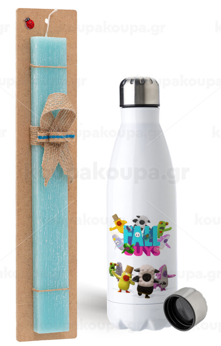 FALL GUYS, Πασχαλινή Λαμπάδα με μεταλλικό παγούρι ανοξείδωτο (750ml) & κερί αρωματικό πλακέ (30cm) (ΤΙΡΚΟΥΑΖ)