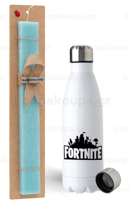 Fortnite, Πασχαλινή Λαμπάδα με μεταλλικό παγούρι ανοξείδωτο (750ml) & κερί αρωματικό πλακέ (30cm) (ΤΙΡΚΟΥΑΖ)
