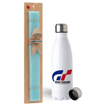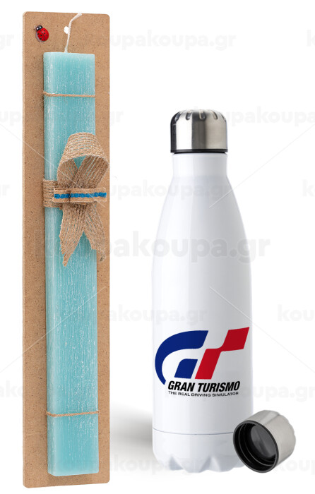 gran turismo, Πασχαλινή Λαμπάδα με μεταλλικό παγούρι ανοξείδωτο (750ml) & κερί αρωματικό πλακέ (30cm) (ΤΙΡΚΟΥΑΖ)