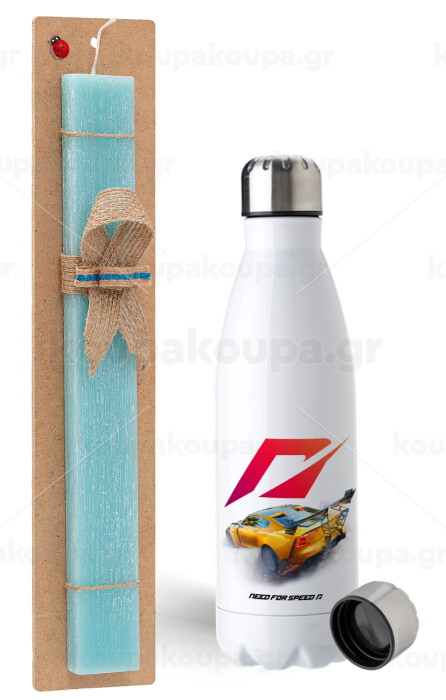Need For Speed, Πασχαλινή Λαμπάδα με μεταλλικό παγούρι ανοξείδωτο (750ml) & κερί αρωματικό πλακέ (30cm) (ΤΙΡΚΟΥΑΖ)