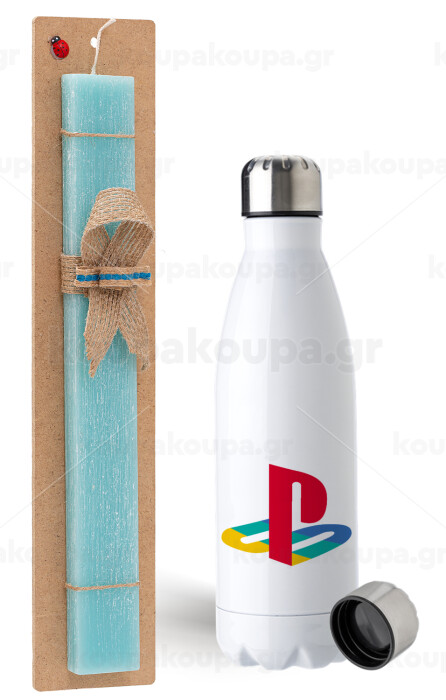 Playstation, Πασχαλινή Λαμπάδα με μεταλλικό παγούρι ανοξείδωτο (750ml) & κερί αρωματικό πλακέ (30cm) (ΤΙΡΚΟΥΑΖ)
