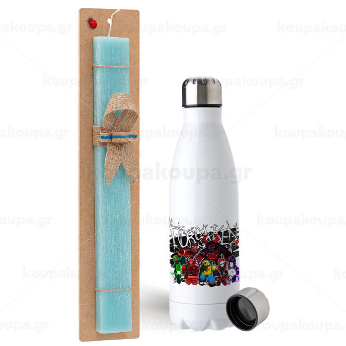 Roblox Forsaken, Πασχαλινή Λαμπάδα με μεταλλικό παγούρι ανοξείδωτο (750ml) & κερί αρωματικό πλακέ (30cm) (ΤΙΡΚΟΥΑΖ)