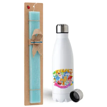 Roblox Steal a Brainrot, Πασχαλινή Λαμπάδα με μεταλλικό παγούρι ανοξείδωτο (750ml) & κερί αρωματικό πλακέ (30cm) (ΤΙΡΚΟΥΑΖ)