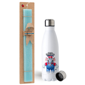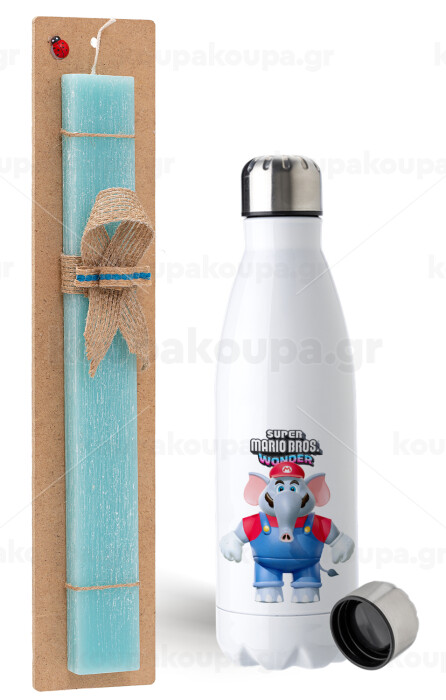 Super mario wonder, Πασχαλινή Λαμπάδα με μεταλλικό παγούρι ανοξείδωτο (750ml) & κερί αρωματικό πλακέ (30cm) (ΤΙΡΚΟΥΑΖ)