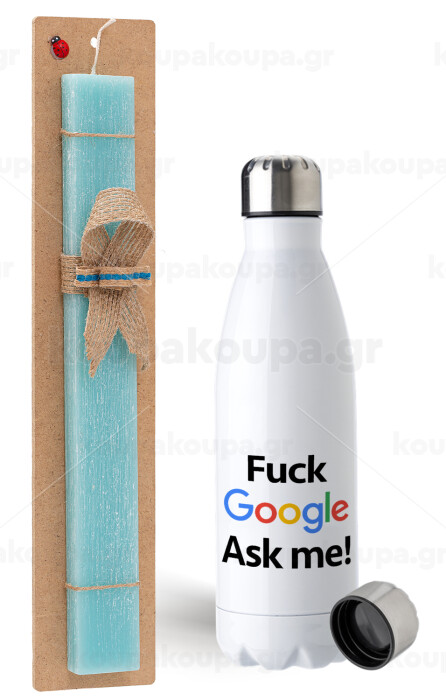 Fuck Google, Ask me!, Πασχαλινή Λαμπάδα με μεταλλικό παγούρι ανοξείδωτο (750ml) & κερί αρωματικό πλακέ (30cm) (ΤΙΡΚΟΥΑΖ)