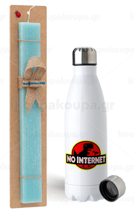 No internet, Πασχαλινή Λαμπάδα με μεταλλικό παγούρι ανοξείδωτο (750ml) & κερί αρωματικό πλακέ (30cm) (ΤΙΡΚΟΥΑΖ)