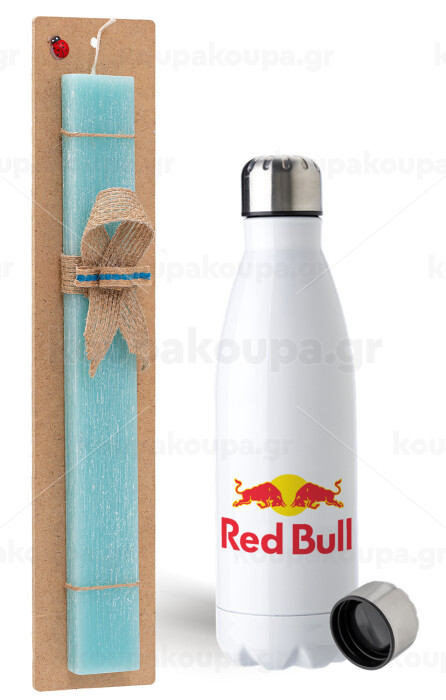Redbull, Πασχαλινή Λαμπάδα με μεταλλικό παγούρι ανοξείδωτο (750ml) & κερί αρωματικό πλακέ (30cm) (ΤΙΡΚΟΥΑΖ)
