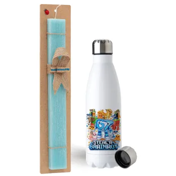 Steal a Brainrot Six Seven, Πασχαλινή Λαμπάδα με μεταλλικό παγούρι ανοξείδωτο (750ml) & κερί αρωματικό πλακέ (30cm) (ΤΙΡΚΟΥΑΖ)