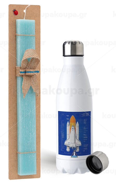 Nasa Space Shuttle, Πασχαλινή Λαμπάδα με μεταλλικό παγούρι ανοξείδωτο (750ml) & κερί αρωματικό πλακέ (30cm) (ΤΙΡΚΟΥΑΖ)