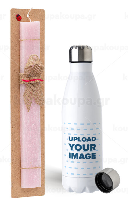 Το δικό σου σχέδιο, Πασχαλινή Λαμπάδα με μεταλλικό παγούρι ανοξείδωτο (750ml) & κερί αρωματικό πλακέ (30cm) (ΡΟΖ)