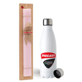 Ducati, Πασχαλινή Λαμπάδα με μεταλλικό παγούρι ανοξείδωτο (750ml) & κερί αρωματικό πλακέ (30cm) (ΡΟΖ)