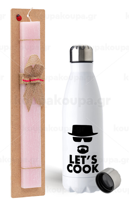 Let's cook, Πασχαλινή Λαμπάδα με μεταλλικό παγούρι ανοξείδωτο (750ml) & κερί αρωματικό πλακέ (30cm) (ΡΟΖ)