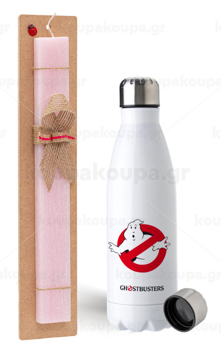 Ghostbusters, Πασχαλινή Λαμπάδα με μεταλλικό παγούρι ανοξείδωτο (750ml) & κερί αρωματικό πλακέ (30cm) (ΡΟΖ)