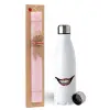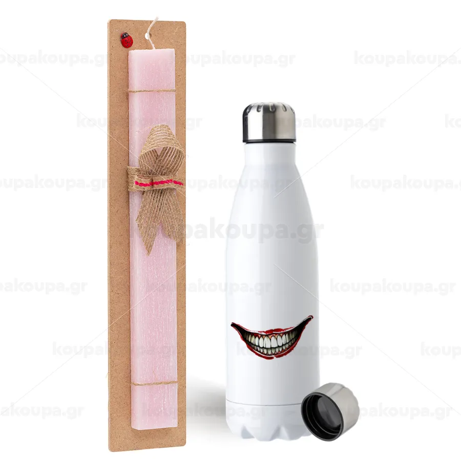 Joker smile, Πασχαλινή Λαμπάδα με μεταλλικό παγούρι ανοξείδωτο (750ml) & κερί αρωματικό πλακέ (30cm) (ΡΟΖ)