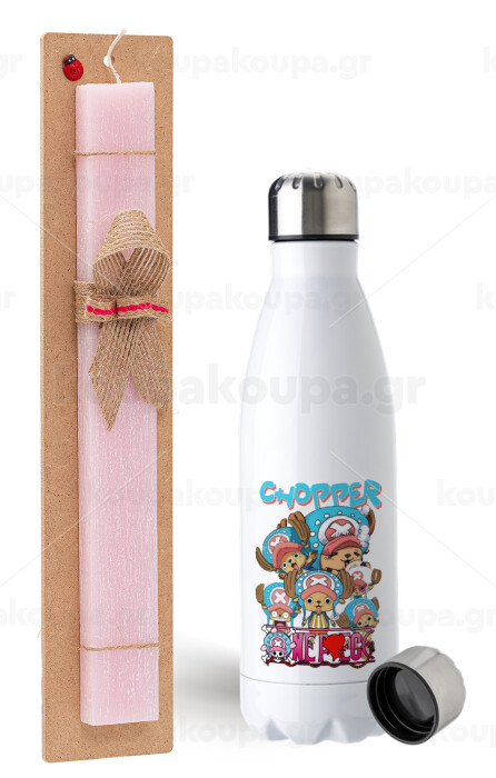 Chopper One Piece, Πασχαλινή Λαμπάδα με μεταλλικό παγούρι ανοξείδωτο (750ml) & κερί αρωματικό πλακέ (30cm) (ΡΟΖ)
